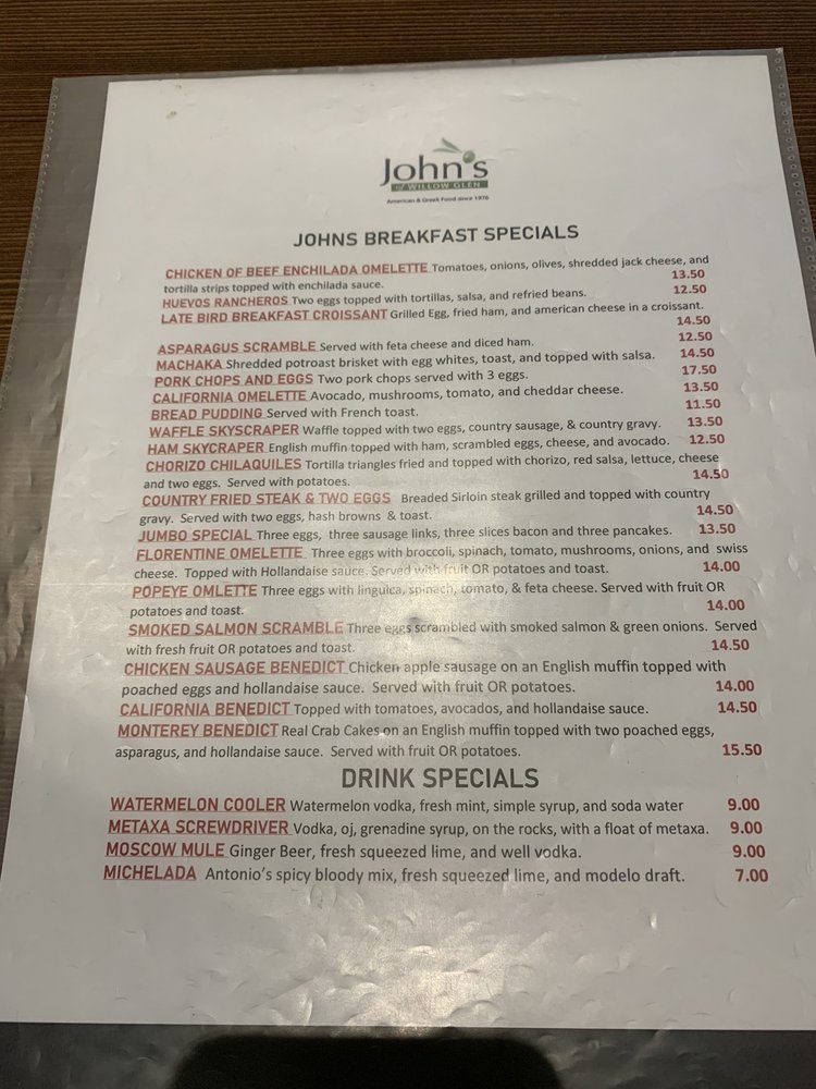 At John’s of Willow Glen, located at 1238 Lincoln Ave in San Jose, CA, you can savor a delightful medley of Italian-American cuisine, breakfast, and brunch offerings. Their extensive menu caters to various palates, featuring fan favorites like the Chorizo Benedict and the mouthwatering John’s Steak and Eggs. Breakfast is served until 3 PM, making it the perfect spot for a late brunch or hearty lunch.